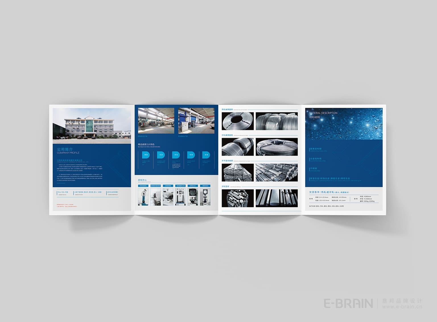 江陰匯滋金屬型材主要經(jīng)營碳結(jié)鋼、合金鋼、精品扁鋼的銷售。此次為精品扁鋼系列產(chǎn)品做產(chǎn)品折頁設(shè)計、產(chǎn)品宣傳冊設(shè)計,為其量身設(shè)計了凸顯其產(chǎn)品優(yōu)勢的折頁,幫助匯滋金屬提升品牌形象。