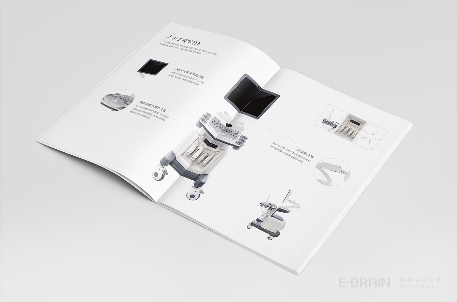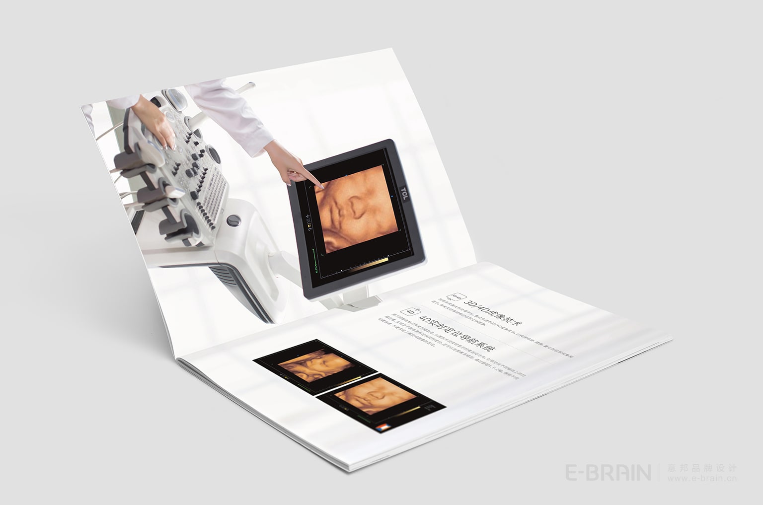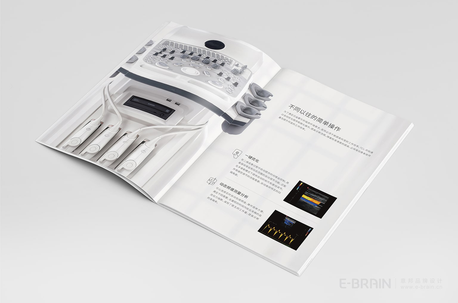 開陽超聲診斷系統(tǒng)的產(chǎn)品宣傳冊(cè),風(fēng)格現(xiàn)代簡約,設(shè)計(jì)元素延續(xù)了品牌的整體設(shè)計(jì)理念,以清晰明了的視覺效果展示產(chǎn)品的功能及優(yōu)勢(shì)。