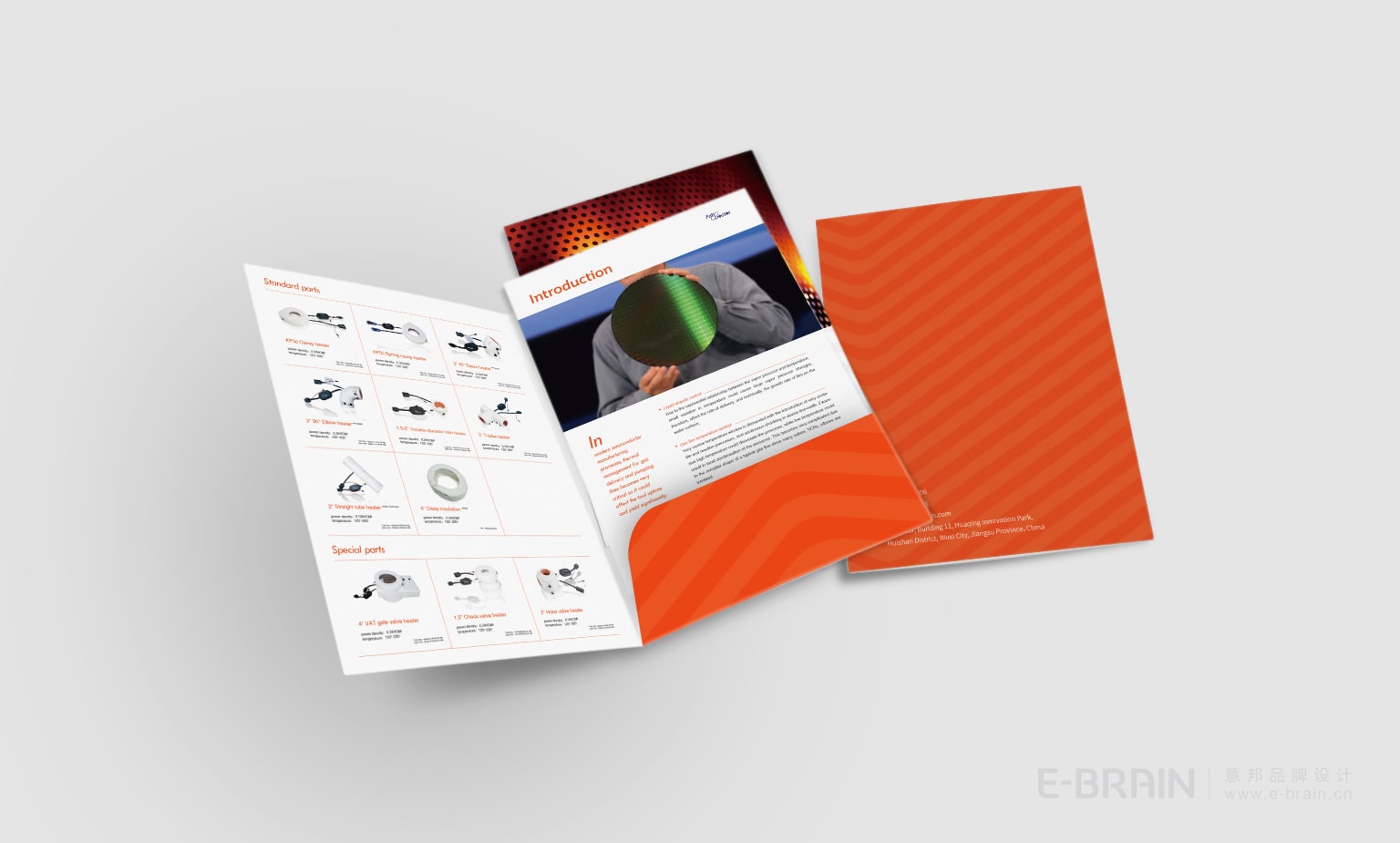 折頁設(shè)計(jì)采用簡約的版式,以清晰的層次和強(qiáng)烈的視覺焦點(diǎn),突出產(chǎn)品特點(diǎn)和優(yōu)勢,同時保持信息的易讀性。折頁色彩以品牌色橙色為主色調(diào),強(qiáng)化識別度,傳達(dá)產(chǎn)品的高端品質(zhì)。