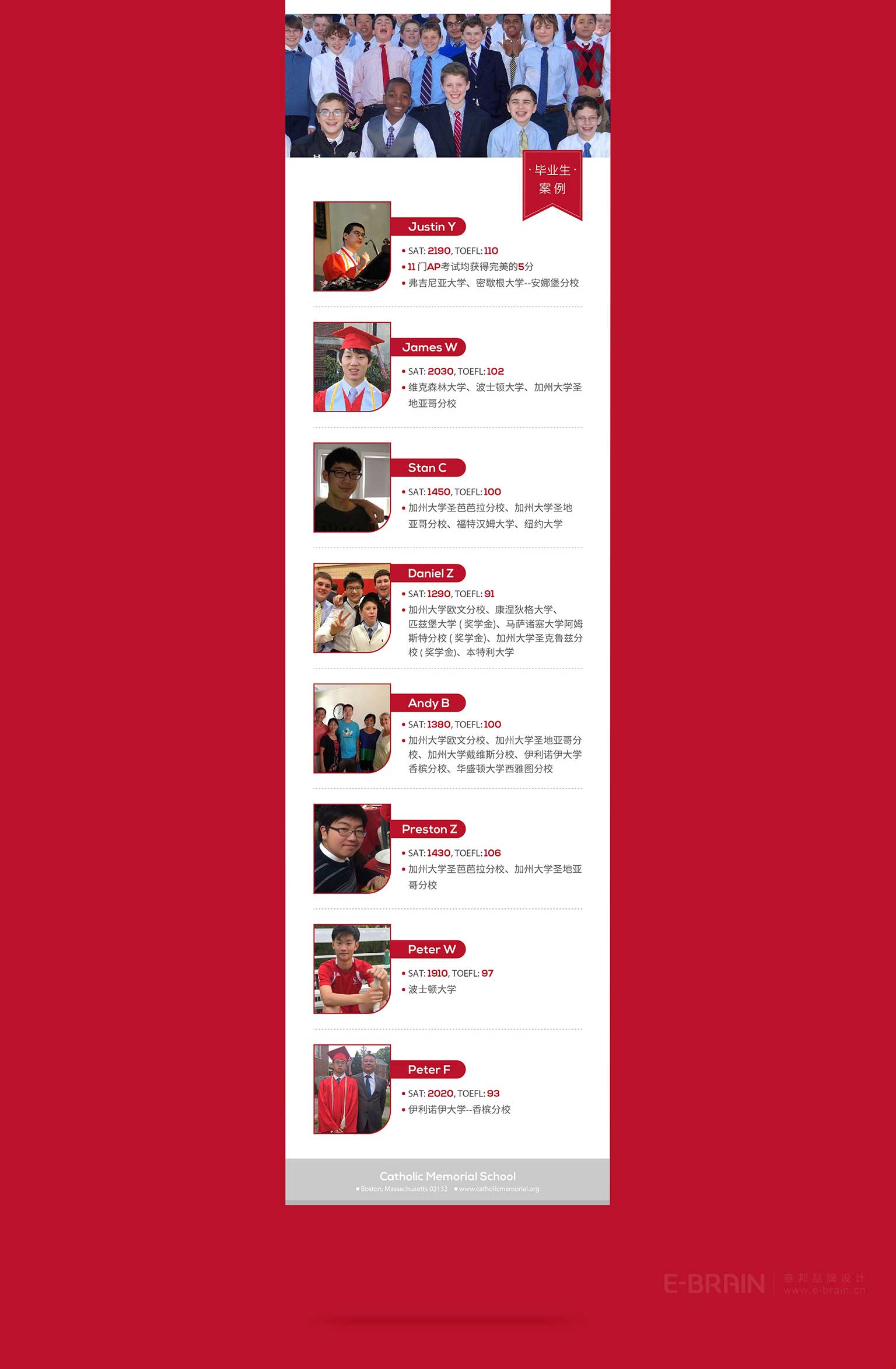 Campus Bridge是一個為學生提供嚴肅環(huán)境去準備大學入學的專門設計的特定區(qū)域。意邦設計公司為Campus Bridge進行線上廣告設計,包括微信長圖設計、微信推文平面設計、學校招生推廣設計、平面創(chuàng)意設計等。版面設計以圖文結合為主,使設計風格達到完美的統(tǒng)一。