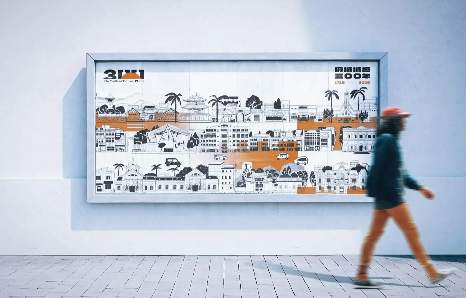 1. 數(shù)字與符號(hào)的巧妙融合 主視覺LOGO的設(shè)計(jì)中,數(shù)字“300”被巧妙地轉(zhuǎn)化為兩個(gè)方括號(hào)“[ ]”,這一設(shè)計(jì)不僅保留了數(shù)字的直觀表達(dá),更賦予了LOGO以深刻的象征意義。方括號(hào)象征著開放與包容,寓意著臺(tái)南府城的歷史與未來相互交融,城墻雖倒,精神永存。