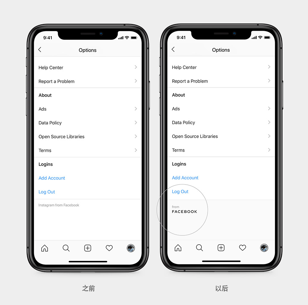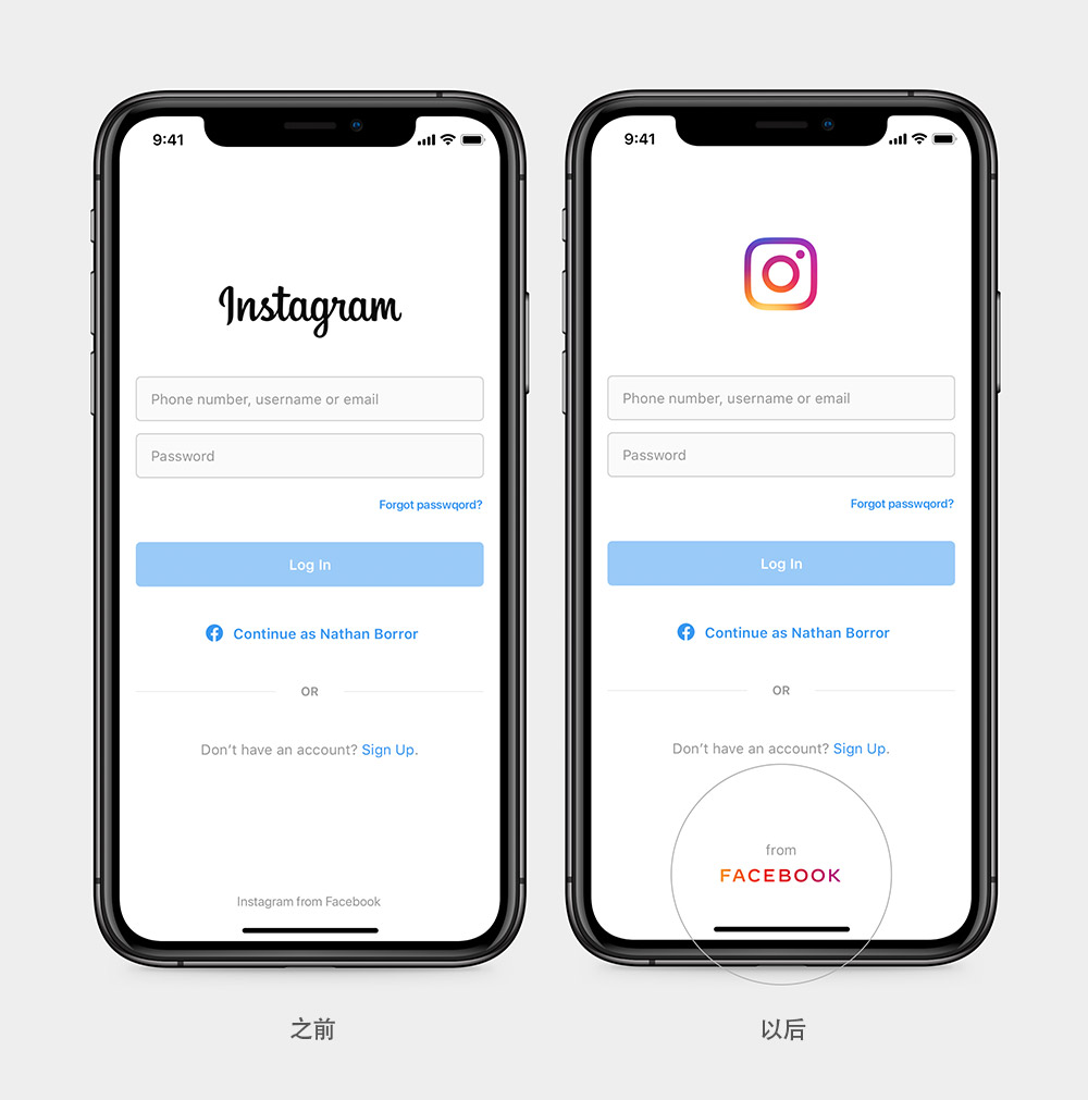 細節(jié)方面,字標具有自適應(yīng)功能,比如在狹小的空間內(nèi),「Facebook」將會縮減為 「FB」字母組合,這個縮寫建立在其股票代碼的基礎(chǔ)上,已與Facebook建立緊密聯(lián)系。