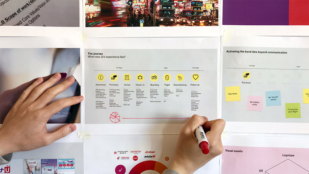 HK Express的嶄新品牌形象將應(yīng)用于各種宣傳媒體,設(shè)計(jì)元素包括精心設(shè)計(jì)的服務(wù)及設(shè)施標(biāo)志、簡(jiǎn)潔的插畫等,從而提升傳播效能。例如,在展示時(shí)刻、風(fēng)景及人物時(shí)將采用富感染力的相片;在表達(dá)品牌形象時(shí),則使用深紫與桃紅兩個(gè)品牌主色設(shè)計(jì)出含意鮮明的插圖。