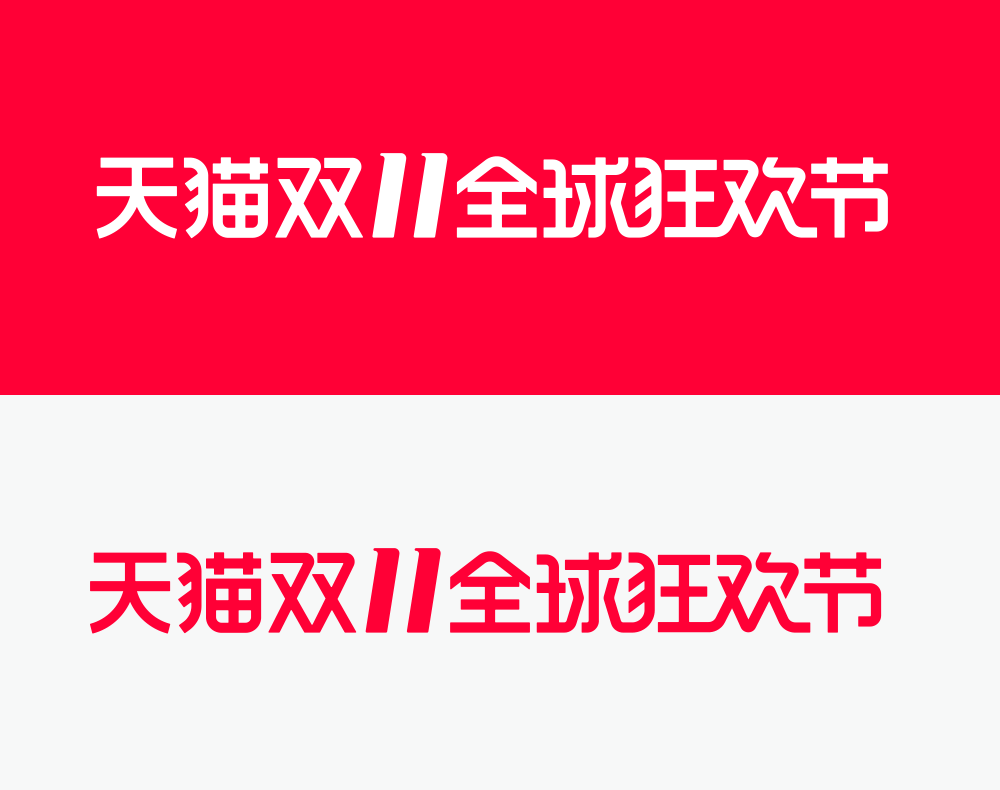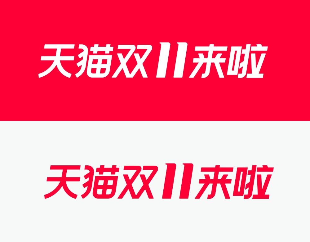 中文的字體也沿用了上一年的版式,今年的口號(hào)有“天貓雙11來啦”、“雙十一”、“天貓雙11”以及“天貓雙11全球狂歡節(jié)”。