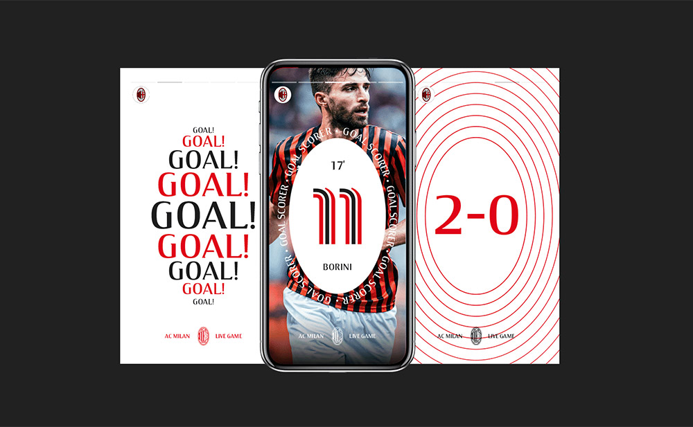 視覺(jué)語(yǔ)言也從意大利文化以及生活中提取靈感,多種多樣的排版印刷系統(tǒng)不僅捕捉了米蘭球迷對(duì)俱樂(lè)部的熱情,讓米蘭精神得以展現(xiàn),同時(shí)也創(chuàng)造出了一種更加直觀和近距離的視覺(jué)感受。圖形語(yǔ)言的核心部分基于俱樂(lè)部橢圓形LOGO向外不斷發(fā)散的圖形進(jìn)行設(shè)計(jì),具有較強(qiáng)的持續(xù)性和表現(xiàn)力。