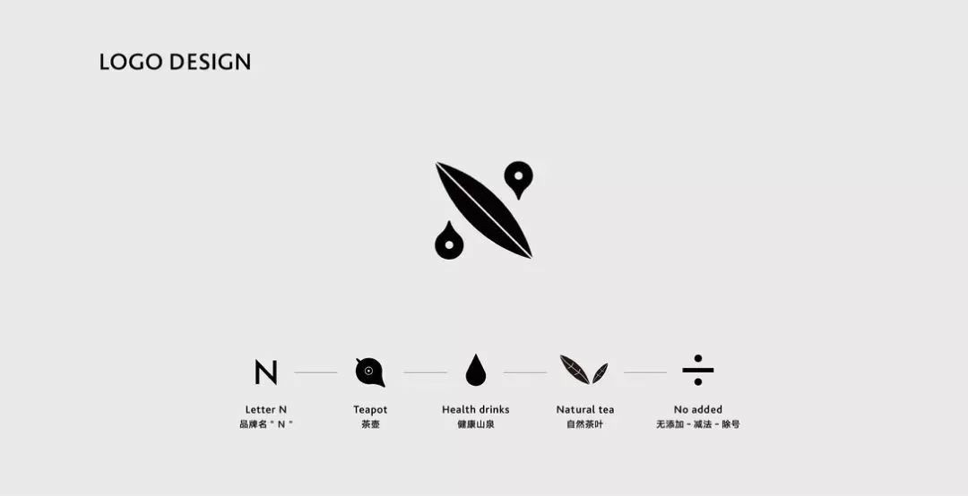 logo整體是一個(gè)N的造型,與品牌名的第一個(gè)字母相吻合,N由茶葉跟地理坐標(biāo)符號(hào)組成,既能體現(xiàn)出產(chǎn)品屬性--茶葉/茶飲行業(yè)的特征,又能體現(xiàn)出品牌名的地理屬性。