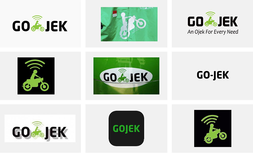 2010年,Gojek成立后,其創(chuàng)始人Nadiem Makarim親自為自己的公司設(shè)計(jì)了logo,logo設(shè)計(jì)的非常直觀,Go-jek的連接符用摩的代替,同時(shí)騎摩的的人物剪影頭頂上還自帶了WiFi信號,非常直接的表達(dá)了公司主要以互聯(lián)網(wǎng)摩的打車為主的快速出行服務(wù)。