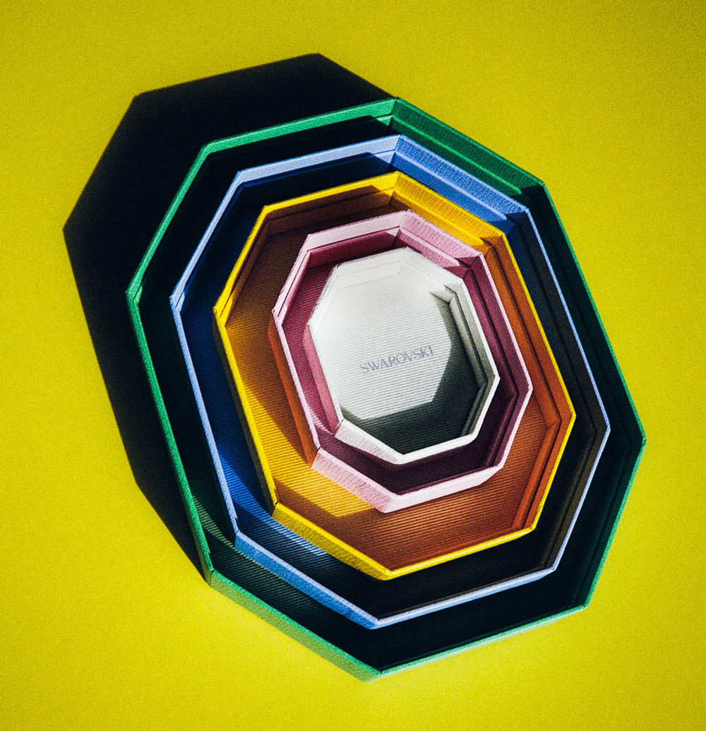 五彩繽紛的包裝盒也繼承了新LOGO最顯著的八邊形造型,盒子的外部是八邊形包裹的天鵝圖標,里襯則是新的字標??雌饋砀影嘿F奢華。