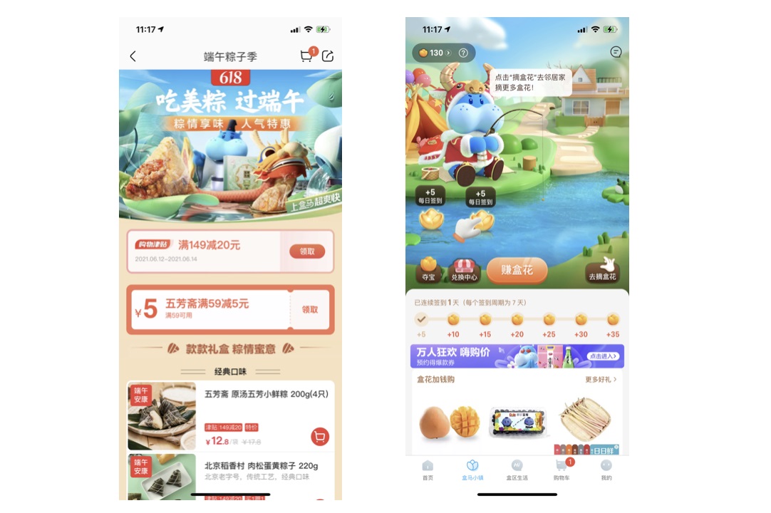 第三個場景:loading,包括下拉刷新和頁面加載。首先我們先看一下美團,直接應用了美團的 IP-袋鼠的形象,飛速奔跑的 motion,既能體現(xiàn)外賣特性又富趣味性。盒馬生鮮,他沒有直接應用盒馬的形象,而是提煉了 logo 里的有特征性的圖形做 loading。這兩種方法在 app 里用的都比較廣,也是設計師常用的方法。