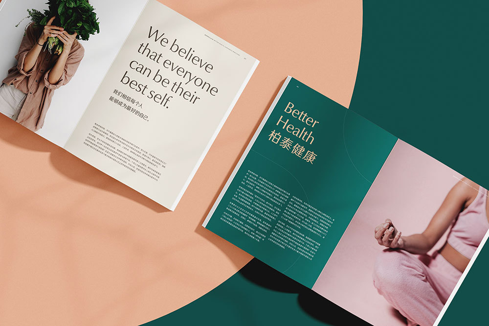 柏泰健康有著美好的品牌愿景,即“相信每個(gè)人都能成為最好的自己”。因此柏泰健康力求將國際化的簡(jiǎn)單人性融入本地化體驗(yàn),以打造一個(gè)繁榮為心,以客為本,關(guān)懷備至,化繁為簡(jiǎn),科技賦能的品牌。品牌視覺識(shí)別系統(tǒng)作為品牌形象的最直觀表現(xiàn)形式,更是意在打破市場(chǎng)對(duì)于保險(xiǎn)的固有印象,塑造一個(gè)高質(zhì)感的人文形象。