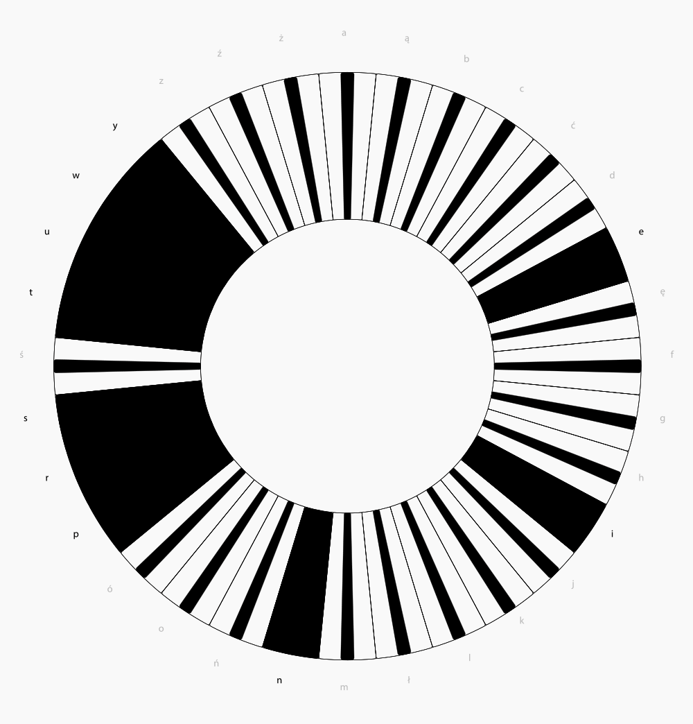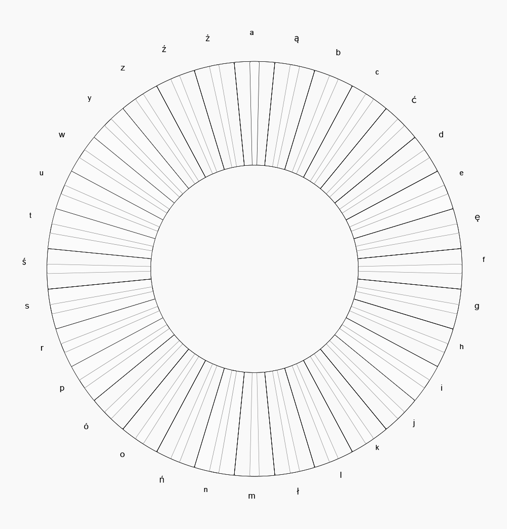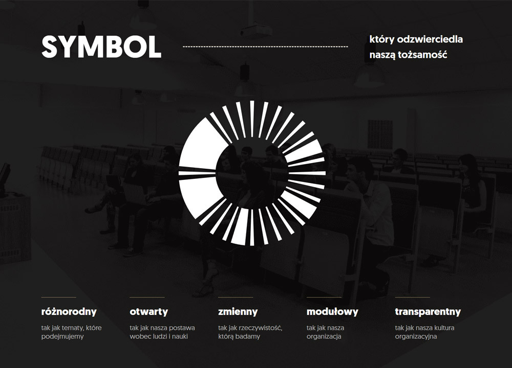 新的圖形基于一個(gè)圓形展開,該圓根據(jù)32個(gè)波蘭語字母被分成了32等份,然后在對(duì)應(yīng)學(xué)校的字母名稱,用顏色填充相應(yīng)的切片構(gòu)建出一個(gè)獨(dú)特的符號(hào)。