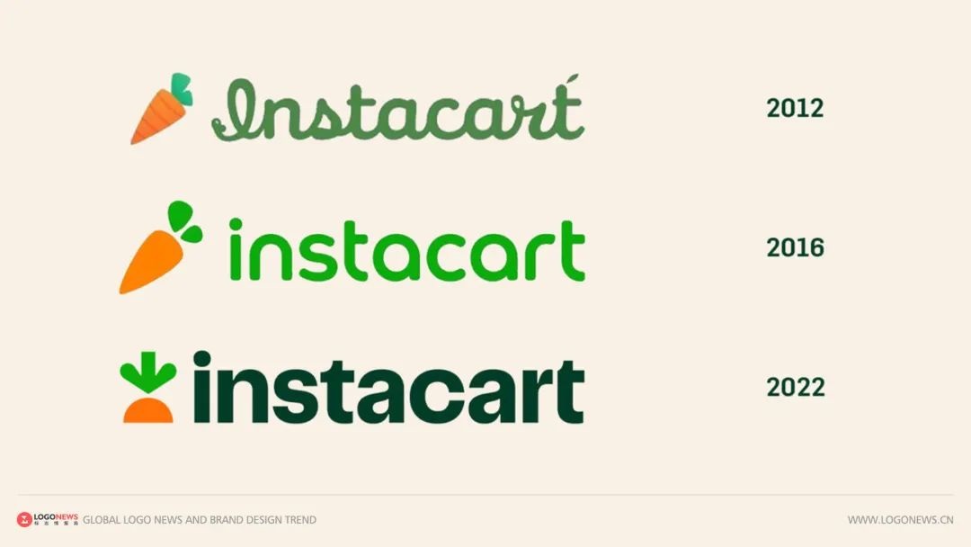 上個(gè)月我們?cè)鴪?bào)道過另外一家生鮮平臺(tái)更改了圖標(biāo)和整體的視覺系統(tǒng)。同樣用蘿卜作品牌符號(hào),同樣是生鮮雜貨電商平臺(tái),讓我覺得贊的地方在于對(duì)圖標(biāo)概念的表達(dá)。在不破壞蘿卜辨識(shí)度的前提下,Instacart 在綠色的蘿卜葉子上做起了文章。