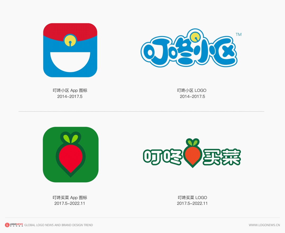 當(dāng)年「叮咚小區(qū)」的LOGO也很有意思,不說(shuō)你應(yīng)該也能看出來(lái)設(shè)計(jì)靈感來(lái)自哪里。「叮咚買菜」上線后,推出了全新的「紅蘿卜」品牌LOGO并一直用到了今天。